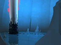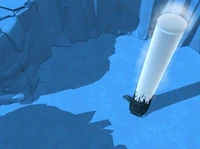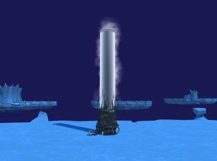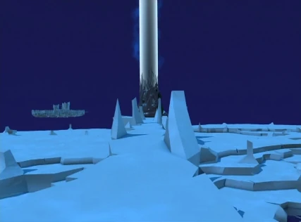 Una torre bien escondida dentro de una gran pared circular de hielo. Muy similar a una torre en el sector de las montañas. | Montañas-Hielo |