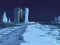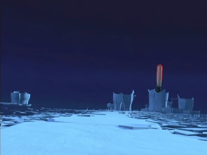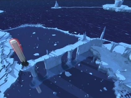 Situada en el borde de una plataforma incrustada en otra del mismo tamaño, accesible por un camino recto rodeado de agua y protegida por pequeñas montañas de hielo. | No | |