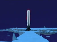 Una torre situada en el borde de una plataforma grande y plana. | Bosque-Hielo Montañas-Hielo |