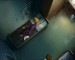 In Odd and Ulrich's room, Odd (Yumi) looks through a drawer to get a green, crocodile-themed utensil. As she gets it, Kiwi growls at her, knowing that it isn't really his master who's in the room. Odd (Yumi) gets the object and leaves as Kiwi chases after her, causing him to bump into the door. In the hallway, Yumi/Odd is confronted by Magali de Vasseur. Magali slaps Odd (Yumi) across his (her) left cheek, saying that she knows all about Claire and calls him (her) "despicable". Moments later, Claire Girard comes by and slaps Odd (Yumi) across her/his other cheek, saying she knows all about Magali and calls him (her) a "sneaky rat". Sissi comes and tells her that Ulrich will need a new date once his string bean drops. When she leaves, Ulrich comes in, asking if she got "it". Odd (Yumi) asks him what Sissi meant by "string bean", but Ulrich tells her it's nothing. As the two walk out of the dormitory building, Milly and Tamiya grill Ulrich with questions for the newspaper's gossip section. Ulrich refuses to answer as they walk past.