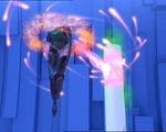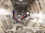 As Ulrich maneuvers through various obstacles including a Creeper in order to reach the Key, Yumi and Odd are attacked by the metallic orbs, which are revealed to be complex weapons capable of flying, sprouting spikes, and generating enough heat to melt the station's metal doors. While Odd and Yumi retreat from the orbs, William arrives on the Replika and begins damaging the Skid even further, forcing Aelita, who has reentered the Skid in order to transfer whole energy into protective shields and monitor them, to disembark and intercept him. When the orbs advance on Odd and Yumi, Odd opens an emergency hatch, sucking the orbs and several supply boxes out of the space station.