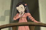 After a return to the past, Yumi declares she wants nothing to do with the play again. However, the gang reminds her that it's also the only way to reunite her parents. Jeremie then announces he has an idea on how to do the play without Yumi playing a guard. During the play, Yumi whispers Ulrich's lines to him from behind a stage prop of a bush while Herb plays the guard this time, sparking a laugh at his appearance from the audience. When Yumi's father talks to his wife about what Yumi's part in the play is, Jeremie pulls up the stage prop Yumi is hiding behind with along with Ulrich by pulling on the stage rope attached to it. This showing Yumi's appearance on the stage sparks laughter from the audience, including Yumi's parents, making her smile.