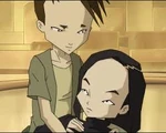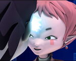 15 minutes later, Sissi comes out wearing a wig that makes her look exactly like Yumi's, but with a dress that doesn't match Yumi's fashion style at all. Ulrich then decides to go get one of Yumi's own dresses for Sissi to wear. The boys are still perplexed at how cooperative Sissi is being. As Aelita is virtualized, Ulrich arrives at the Ishiyama house and sneaks in through the side door, ordering Odd to keep a lookout. Meanwhile, Aelita makes her way to the tower Yumi is hiding in on the overboard. While Ulrich sneaks through Yumi's house undetected (Yumi's parents, Takeho and Akiko, can be heard arguing in the background), Aelita closes in on the tower, still refusing to tell Jeremy what she's planning. She reaches the tower just as Ulrich reaches Yumi's bedroom and finds the dress. Aelita finally reveals her idea: She's going to activate a process that will transfer her own DNA sequence code to Yumi's virtual structure, sacrificing her place on Earth to Yumi. Jeremie tries to protest to this, but Aelita insists Yumi's place is on Earth and that if anyone should remain on Lyoko, it should be her. Before Jeremy can tell her to stop, she cuts off the signal with him and they begin the transfer. Jeremie's analysis of the process then reveals how dire this situation is, as well as XANA's master plan.