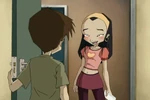 In the cafeteria, Odd and Jeremie converse about whom might be Ulrich's secret admirer. Odd suggests Sandra, Claire, Milly, and Tamiya, but Jeremie says they're all too young. Then Odd decides it must be Emily, as he spots her in line to get food. When Yumi overhears and asks Odd whom Emily is in love with, as Odd doesn't mention Ulrich, Odd answers Jim, leading Yumi to say a comment about love being blind, only to find Jim behind her, who luckily didn't seem to hear.