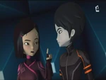 Odd shows great prowess in the Megapod, bowling over Tarantulas in his way and then jumping off the platform, landing at the entrance to the Dome, narrowly avoiding a fall into the Digital Sea. The heroes enter the heart of the Cortex. They reach the terminal without trouble and insert a card to deactivate the firewall. They find that it fails when a Ninja arises in front of Odd, quickly followed by two others. Before the group can react, one of them charges and devirtualized Aelita. A three-on-three fight ensues. The Lyoko Warriors soon find themselves in trouble. The Ninjas seem invincible: their skills are far greater than any of the heroes. Strong enough to deflect fans, quick enough to block laser arrows, and skilled enough to outclass William in close quarters combat. Odd is quickly devirtualised.