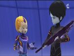Yumi and William then adapt their combat styles. They devirtualize the first Ninja when William turns to smoke to allow Yumi’s fans to go right through him, hitting the Ninja instead. William is however defeated just after. Jeremie sends Yumi a new weapon to stand up to the remaining two Ninjas: a Bo Staff. Newly armed, Yumi defeats the two Ninjas with ease.