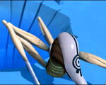 At the factory in the lab, Sissi makes a comment that she feels like she is in a James Bond movie. They find the Scyphozoa iis already waiting for Aelita in the Ice Sector, with only 2 minutes left before the ultimatum is up. Ulrich searches the refrigerator warehouse as the ultimatum is up. Ulrich then hears screams and finds Mr. Delmas as he is electrocuting Yumi and Odd, and uses the EMP bomb after Jeremie tells him that the bomb can also simply deactivate anything electronic, breaking X.A.N.A.'s control of Mr. Delmas for a bit of time. At the factory, Aelita has Sissi knock out Jeremie in order to virtualize her to Lyoko. Once there, she is attacked and chased by three Kankrelats as the others are running to the factory. Aelita slides through an ice tunnel to escape from them. During the slide, two are destroyed from damage as Aelita lands in front of a rock. The third Kankrelat lands safely and backs Aelita towards the Scyphozoa, which catches her and begins draining her memory.