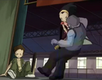 In front of Science Building, The principal is seen going in the direction of Yumi, Odd, and William. Odd bides farewell saying that he has to get to music class with the others, while William states that he's lucky, as they have chemistry. The principal suddenly grabs Yumi and Odd, after she greets him. William objects this behavior and tries to stop him, but he throws William into the science building. Outside the school gates, a car's doors open automatically. The posessed principal gets to the car, throwing Odd and Yumi there and closes the doors. Yumi pleads as Mr. Delmas is revealed to be possessed by X.A.N.A.. William follows, limping but watches in despair as the car drives off. Later, Nicholas is playing a car racing video-game in the restroom, which is interrupted when he overhears William warning other students that Mr. Delmas has "gone crazy" and tells them the details about the situation.